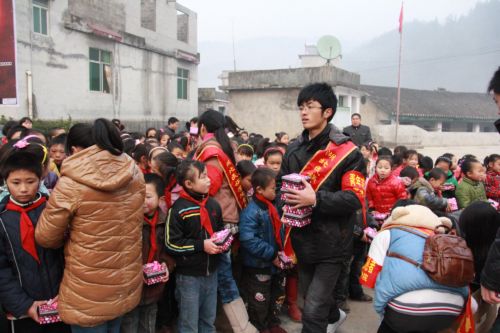 本网讯(记者 刘健 摄影 王占东)12月31日上午,由团州委举办的“城乡少年手拉手,红领巾送温暖”活动在恩施市三岔乡茅坝小学举行,王占东同学带领36365官网艺术学院的8名青年志愿者随从团州委进行志愿服务。