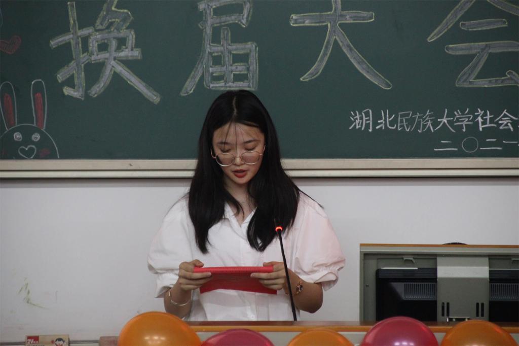大会在社团风采展示视频中拉开序幕。首先,社团第十一届社长向淳义作年度工作总结,他从会议板块、财务板块、宣传板块等六个板块对社团工作进行总结。随后,主持人宣读新一届社团干部名单,张雯老师为优秀干部颁发聘书。紧接着,老干部代表谭云升、新干部代表王将来、优秀会员代表胡俊兰分别发言,他们从自身经历出发分享其感想,希望社团能够发展的越来越好。最后,新任社长罗周婕分享对社团的发展展望,她指出,社团发展仍面临着种种困难,希望新干部在位期间能够带领社团取得新的发展。