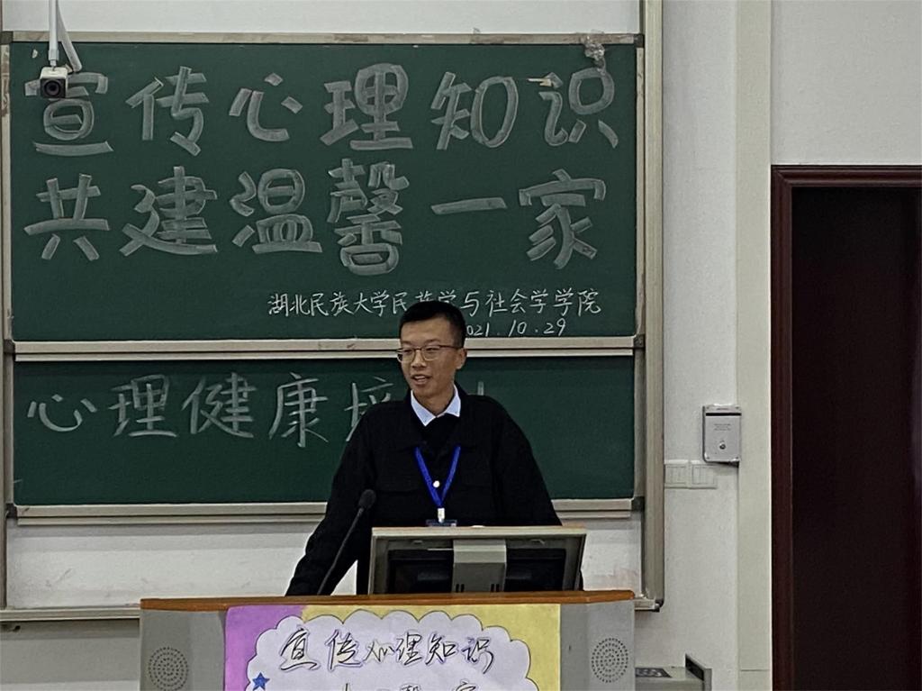 本网讯(记者 张梦婷/文 见习记者 陈诺/图)为保持健康心态,营造和谐寝室氛围,10月29日,我院于修远楼5A501教室开展以“宣传心理知识,共建温馨一家”为主题的寝室长心理健康培训活动。我院学生会心理健康部干事张成栋担任主讲人,我院全体大一寝室长参加此次活动。