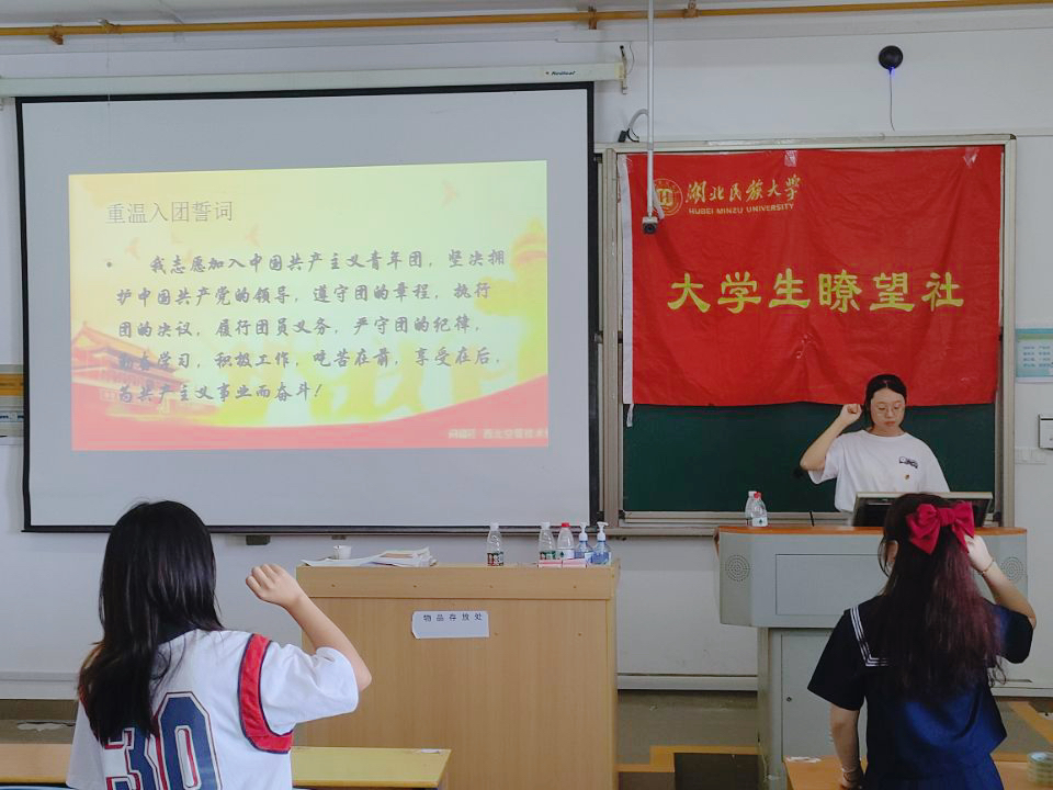 本网讯(记者 欧阳洁)6月17日,大学生瞭望社在修远楼5A501教室开展以“书写新时代共青团的壮丽青春篇章”为主题的团日活动,瞭望社全体成员参与本次活动。