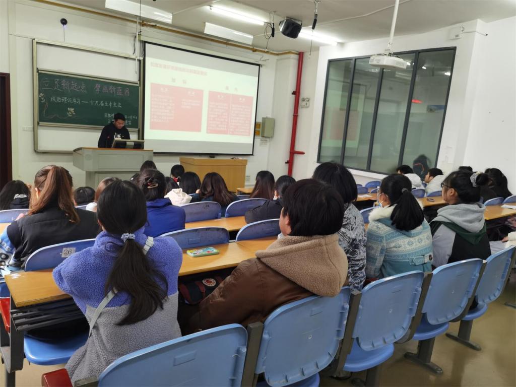 本网讯(见习记者 周树洋 刘雨/文 余喆 肖欣/图)为促进我院团学干部队伍建设,提升团学成员思想政治素养,学习先进理论知,11月26日,我院在修远楼5A502教室举办以“立足新起点,擘画新蓝图”为主题的政治理论学习活动。团总支宣传部部长刘圣富担任主讲人,我院全体团学成员参与本次活动。