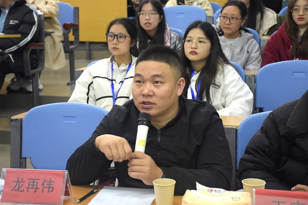 中场环节,活动嘉宾湖北省村村播农业发展有限公司董事长龙再伟、抖音自媒体人王庆围绕“大学生利用‘短视频+直播’方式进行创业”和在场学生进行了交流。他们鼓励大家利用自身优势,积极通过短视频平台实现创业、服务地方,可以先模仿、后创新、坚持内容为主,应始终充满信心。