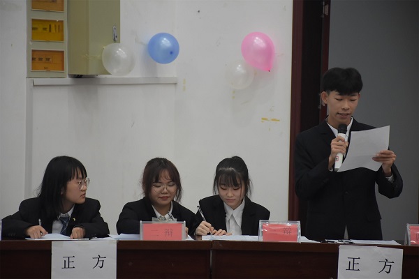 本网讯(见习记者 王丽 刘雨 周树洋/文 肖欣 陈文宇 鲁心雨/图)为顺应社会对思辨型人才的需要,提升大学生逻辑思维能力,11月17日,我院于修远楼5B403学术报告厅成功举办第五届“迎新杯”辩论赛决赛。我院团总支书记熊霞老师,学科建设科副科长赵慧翔老师,大一社会学班主任冉红芳老师、杜鹏老师受邀出席本次比赛并担任评委。我院全体大一新生及各二级学院代表参加此次活动。