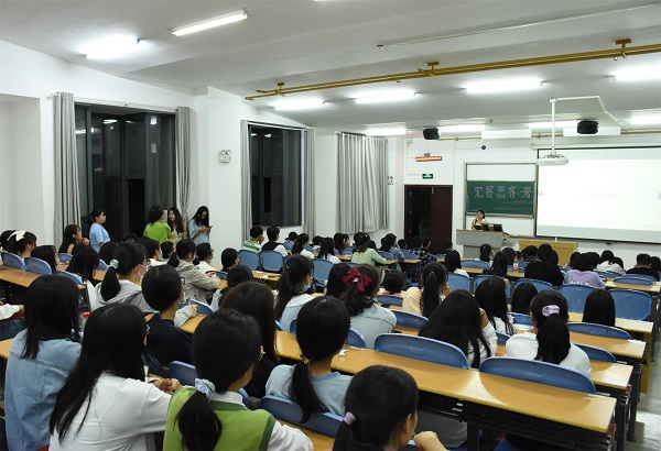 本网讯(记者 张筱玉 向春霞/文 张莹 武依帆/图)为加强新生对大学生活的了解,促进其学习与成长发展,9月19日,我院于修远楼5A502教室举办“见贤思齐焉”新老生交流活动。大四优秀学生代表张晓玲、宋金鑫、谭艳红、陈礼双为交流会发言人,我院全体大一学生参与本次活动。