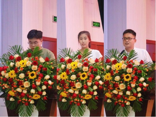 为更好地彰显学院良好的学术氛围和文化底蕴,典礼邀请到了三位老师带着散发着墨香的专著来到了现场,采取随机抽取的方式选择幸运的同学们上台,获得老师们签赠书籍。一共有9位同学分别获得由冉红芳教授、金晖教授、丁志军副教授送出的专著。老师们用精心的赠言,鼓励同学们从书中汲取智慧,收获成长的力量。
