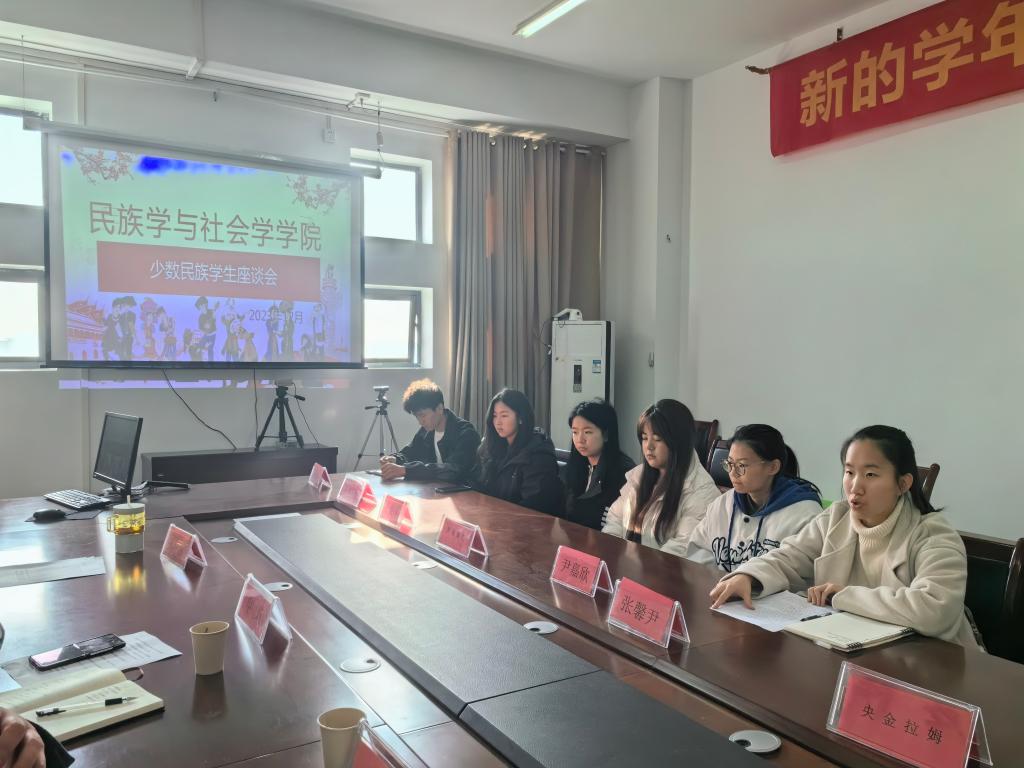 据悉,本次座谈会旨在通过12位少数民族学生代表深入了解少数民族同学在日常学习生活中遇到的困难及问题,了解同学们的学习情况,让少数民族同学体会到学院的温暖与关怀,学院也希望通过座谈会的形式,传达党中央有关民族工作的政策,通过学生代表在大学生中更好的铸牢中华民族共同体意识。
