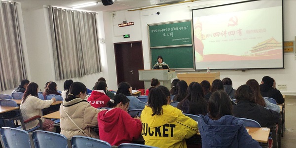 活动伊始,安慧同志以“践行四讲四有,做合格党员”为主题,从“四讲四有的深刻内涵”“四讲四有合格党员的标志与特质”“如何做到四讲四有等方面展开论述。她表示,党员应该遵守党章、加强党性,做一个合格党员。同时,她希望在座同志学好专业知识,提高为人民服务的能力。