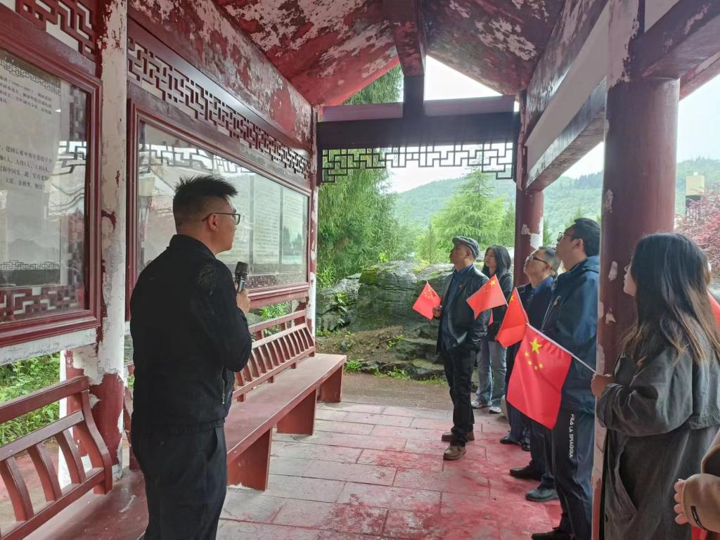 随后全体党员赴忠堡大捷纪念园同上一堂党史教育课。全体党员步入灰白色的广场,环视两边,土家族民居风格的文化长廊上用图片和文字,展示着忠堡大捷的历史故事,追溯着党的革命历程。