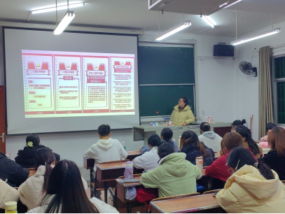 (本网讯 刘丽婧)11月28日下午,我院党总支副书记申莉在外国语学院6B202教室为我院、外国语学院等五个学院的发展对象讲授党课,本次授课主题为“进一步全面深化改革,推进中国式现代化奉献青春力量”。