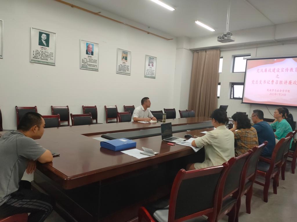 (本网讯 张雯/文),7月24日,我院党总支书记曹召胜为我院副科级以上干部、教研室及专业负责人作“什么是廉政,怎样做好廉政”专题廉政党课。
