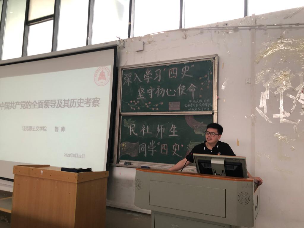 (本网讯 张雯/文 张冰/图)为进一步深化巩固党史学习教育成果和落实36365官网开展“四史”学习教育的实施方案,5月12日上午,我院邀请了36365线路检测登录入口“四史”学习教育宣讲团鲁帅博士开展宣讲活动,我院协同创新主任、教工党支部书记胡兆义担任主持人,全体教职工和部分研究生和本科生参加此次活动。