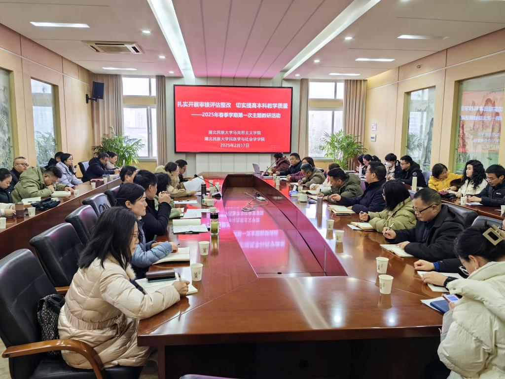 (本网讯 潘华云/文 王海丽/图)教研促发展,携手共进步。2月17日上午,民族学与社会学学院和马克思主义学院在马克思主义学院会议室联合开展新学期第一次主题教研活动。活动以“扎实开展审核评估整改,切实提高本科教学质量”为主题。校党委副书记邓磊、校党委统战部常务副部长丁莉、学工处处长方云霞、民族学与社会学学院与马克思主义学院党政班子成员及部分教师代表出席会议。会议由校党委统战部常务副部长丁莉主持。