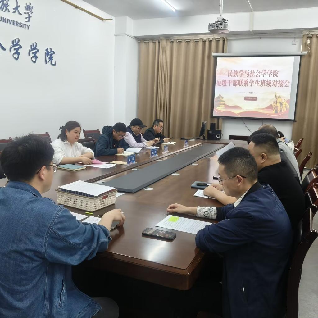 (本网讯 张冰/文)4月14日,民族学与社会学学院处级干部联系学生班级工作对接会在修远楼5B1205召开,学报编辑部主任谭志满,学院全体处级干部、辅导员和班主任参加会议。会议由党总支副书记申莉主持。