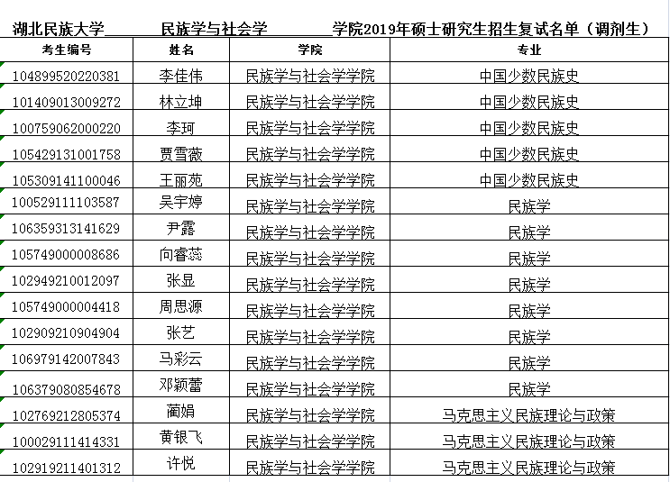 36365线路检测登录入口 民族学与社会学 学院2019年硕士研究生招生复试名单(调剂生)