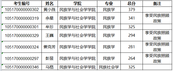 民族学与社会学学院2020年硕士研究生一志愿考生进入复试名单公示