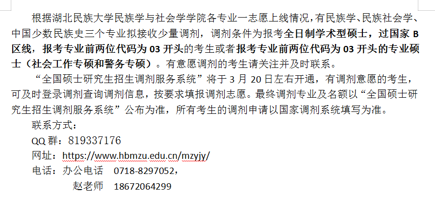 2021年民族学与社会学学院全日制学术型硕士调剂公告