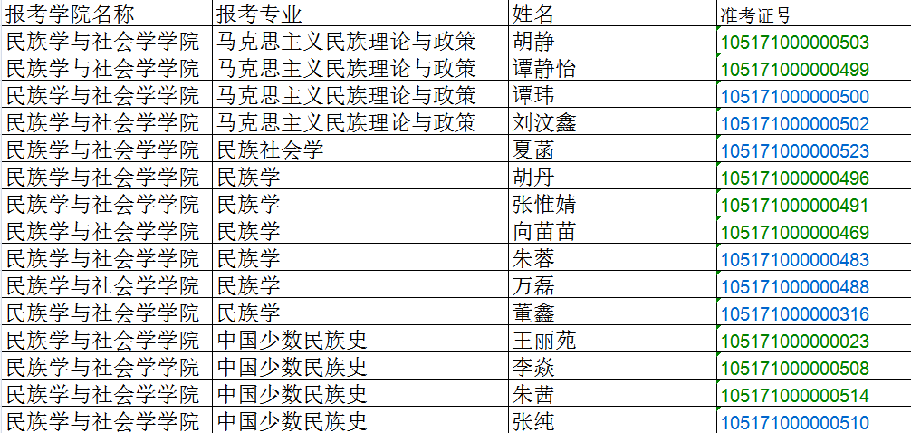 2021年民族学与社会学学院第一志愿考生复试名单