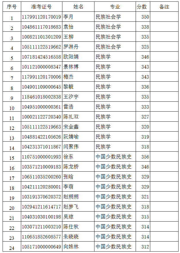 民族学与社会学学院调剂复试名单(二)