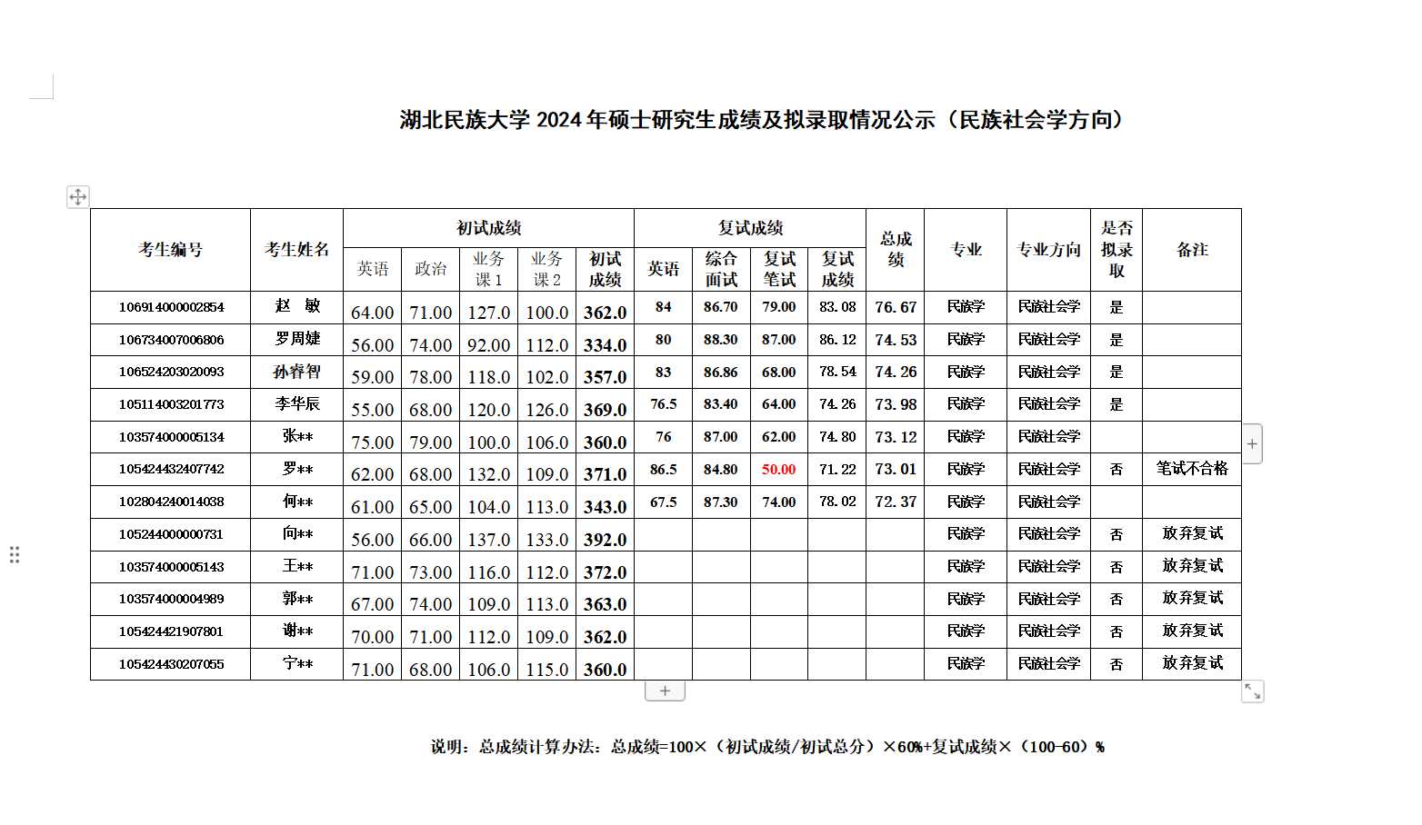 36365线路检测登录入口民族学与社会学学院2024年硕士研究生成绩及拟录取情况公示(民族社会学方向)
