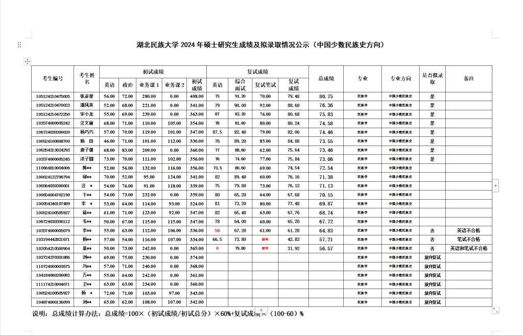 36365线路检测登录入口2024年硕士研究生成绩及拟录取情况公示(中国少数民族史)