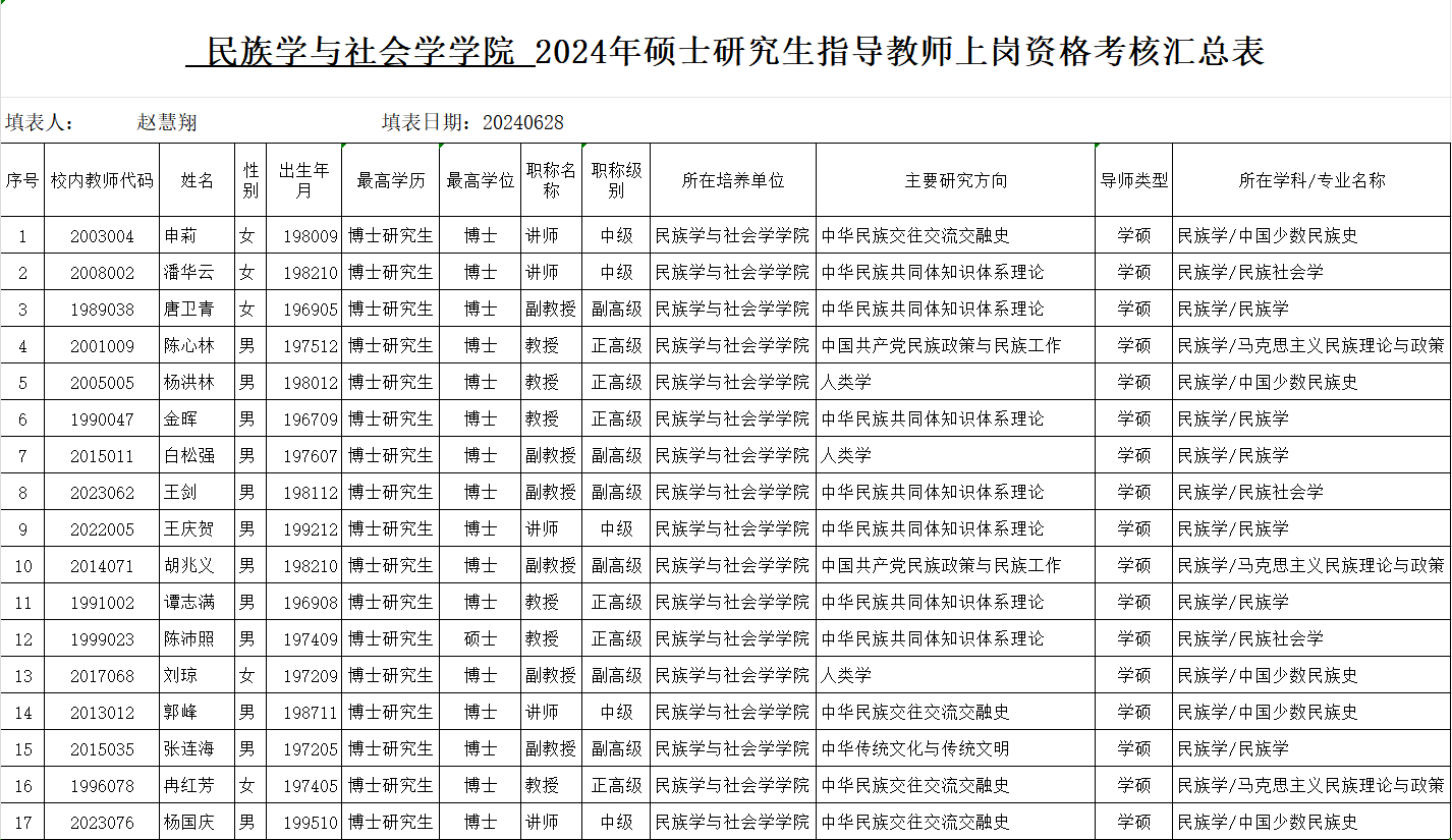 经材料初审,学院学位评定分委员会投票表决,拟同意以上导师在2024年上岗。现对名单进行公示,公示期为2024年6月28日至7月5日,在公示期内如有异议,请向民族学与社会学学院学科建设科反映,电话:18107187790、18672064299。
