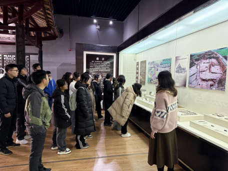 11月29日上午,调查团队来到了田野调查第一站——湘鄂边苏区烈士陵园及鹤峰县博物馆。同学们跟随讲解员的脚步,穿过楼牌、贺龙铜像、烈士祠、纪念碑和主墓群等主要建筑,回顾了1928年到1935年间鹤峰县各族人民在中国共产党的领导下,为开辟革命根据地,建立、发展和保卫红色政权进行的不屈不挠斗争历史,感受革命先辈们精神洗礼。在园区内的鹤峰县博物馆中,同学们在依次阅览《民族文物陈列》《民族碑廊》《湘鄂边苏区革命文物陈列》三个专题长廊,从商周魏晋南北朝时期的部分典型器物、容美土司时期的相关文物,再到鹤峰土家儿女发展湘鄂边革命根据地的斗争历史全过程,以历史为脉络系统了解了以土家族为主体的少数民族创造的丰富而绚丽多彩的民族民俗文化和百折不挠的革命精神,也为奔赴土司文化底蕴深厚的屏山村调研打下知识基础。