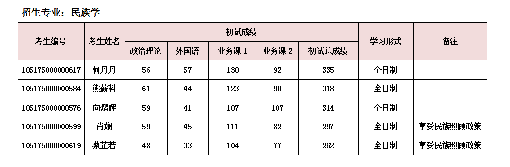 民族学与社会学学院2025年硕士研究生招生复试名单(第一志愿)
