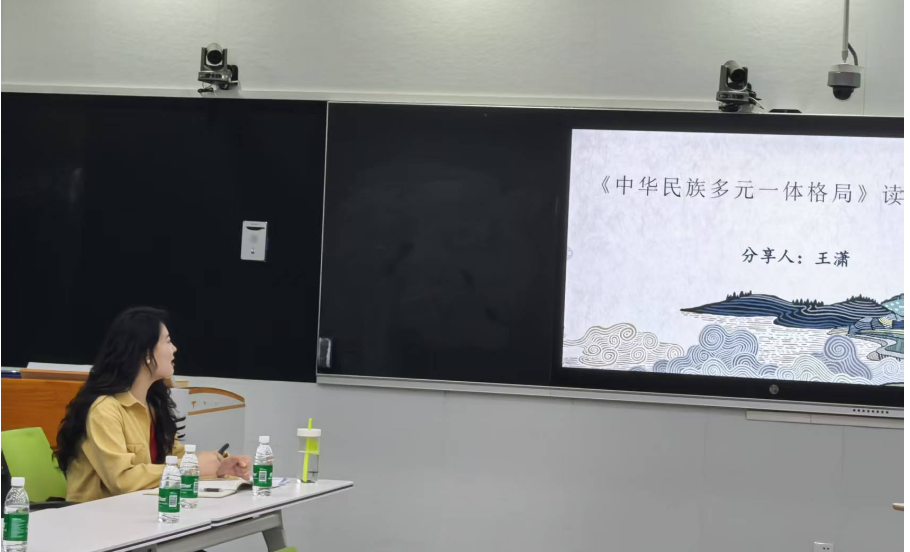 (本网讯 洪子圆/文 邵妍凯/图)2025年5月22日下午,第十一期“阅读文化”读书分享会在修远楼5A701教室举行。本期分享会由中华民族共同体概论课程建设组教工党支部、“自信领航石榴籽”辅导员工作室承办,分享的经典书目为《中华民族多元一体格局》,分享会由杨洪林教授主持,民族学与社会学学院师生、马克思主义学院师生参与讨论,深入研讨,收获颇丰。