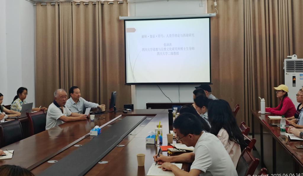 本网讯 徐茂淋/文 夏蕴芩/图)66,四川大学张泽洪教授应邀在5B1205会议室题为解释·象征·符号:人类学理论与西南研究》的学术讲座。我院雷翔教授担任主持人,学院师生参与学术研讨。