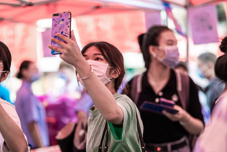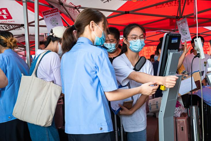 新生扫描行程码(记者 张旭/摄)