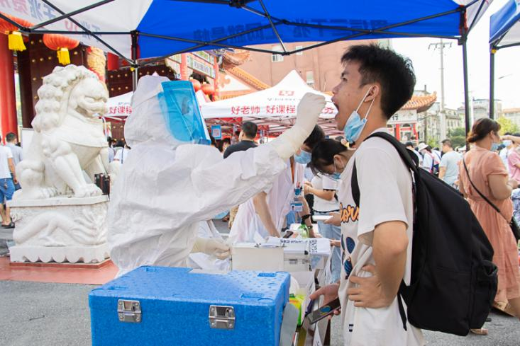 医护人员正在核酸采样(记者 怀志洁/摄)