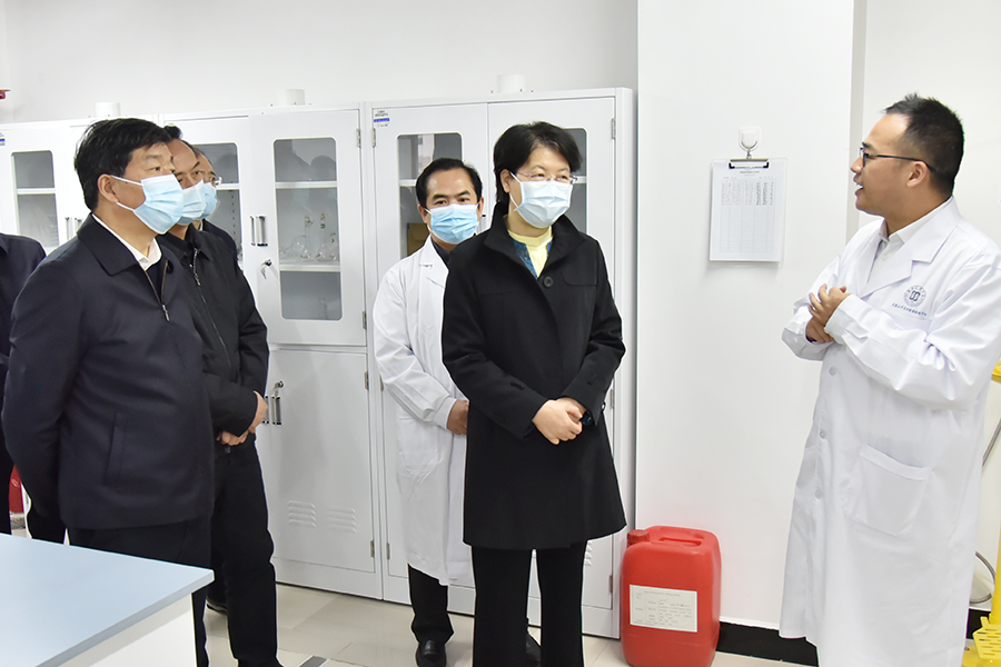 肖菊华一行首先来到武陵山中药材检验检测中心,参观了中心检验检测实验室的核心区域,并详细了解了中药材检验检测对地方产业发展的促进、中药材科研成果转化等方面的情况。中心负责人分别从中心建设背景、功能布局、建设进度规划和下一步重点工作等方面作现场汇报。