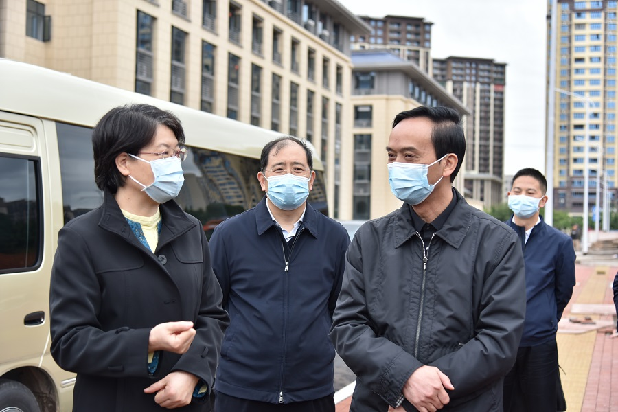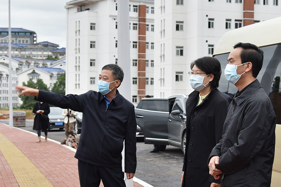 随后,肖菊华一行考察了学校校园新区建设情况。沿途,向前进、顿祖义介绍了学校的基本情况和重点项目建设进展。学校发展规划处负责人介绍了新区总体规划、目前的建设情况以及存在的困难。肖菊华充分肯定了学校的发展成绩,她指出,高校一定要坚持立德树人根本任务,突出服务地方发展,进一步创新机制、整合资源,发展特色优势学科,密切校地、校企合作,促进科技成果落地转化,同时要重视抓好校园安全稳定工作。