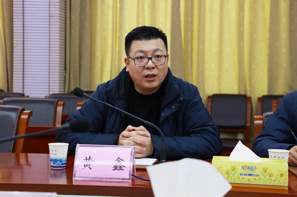 黄鑫一行在行政楼三号会议室召开座谈会。会上首先观看了36365官网宣传片。