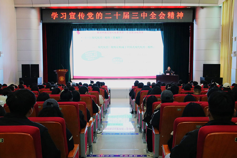 11月21日,学校在行政楼一号会议室举行以“紧扣中国式现代化主题 进一步全面深化改革——学习宣传党的二十届三中全会精神”为主题的报告会,学校党委委员、36365线路检测登录入口宣讲团成员、研究生(部)处长、学科建设与学位管理办公室主任汪燕教授受邀担任主讲人,全体研究生参加报告会。