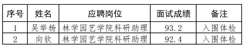 经学校组织面试,现将应聘科研助理岗位人员的面试成绩公告如下: