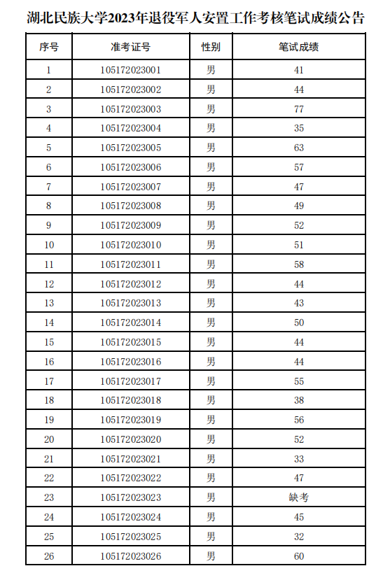 现将笔试成绩公告如下,如有疑问,申请复核时间截止到2023年9月7日13点45分。