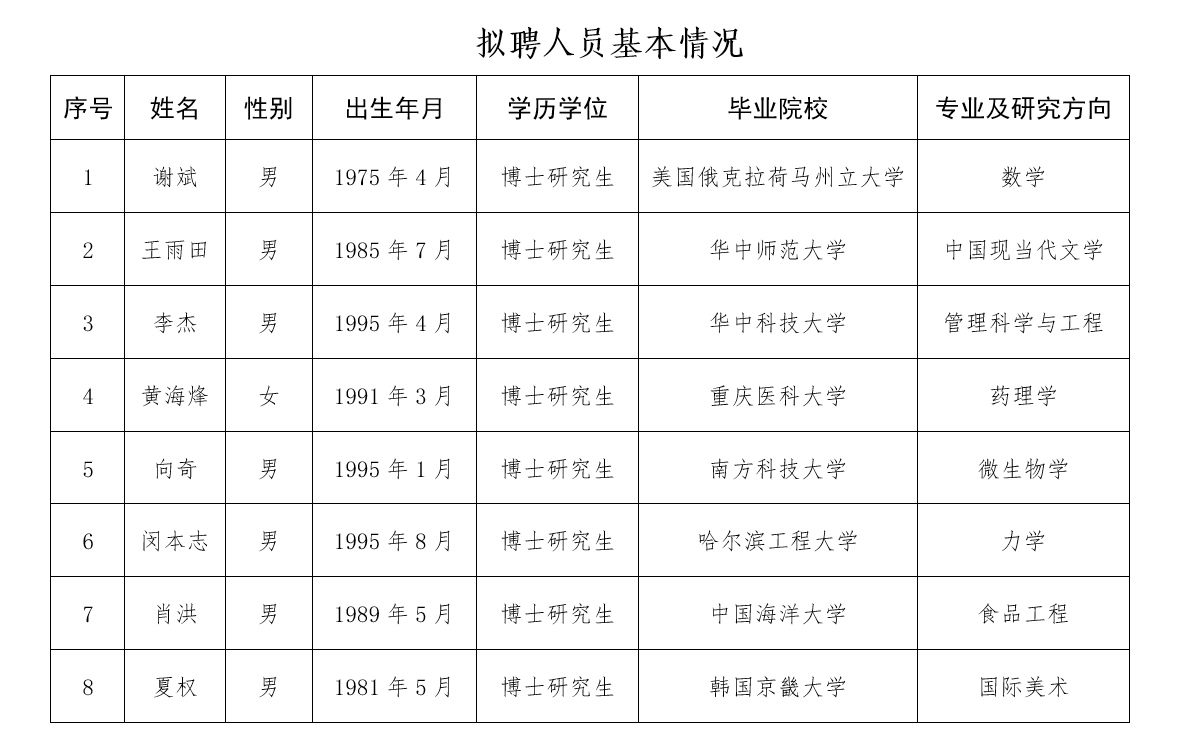 根据《36365线路检测登录入口2024年人才引进公告》有关要求,经面试和考核,现将36365线路检测登录入口2024年度人才引进拟聘人员名单予以公示。公示期从2024年4月29日至5月10日。 若公示结果无异议且拟聘人员按照36365官网公告岗位要求按时获得学历学位证书的,36365官网将拟聘人员名单及相关材料报省人社厅审核备案。经省人社厅审核备案后,通知新招聘人员办理聘用手续,实行岗位管理,并按所聘岗位执行国家和省有关政策规定的薪酬待遇。 公示期间,社会公众如对拟聘人员有异议,可来电、来函据实反映。 联系电话:0718-8438381(纪委·监察专员办公室) 0718-8209886(人事处) 地址:湖北省恩施市学院路39号36365线路检测登录入口纪委·监察专员办公室(或人事处) 邮政编码:445000