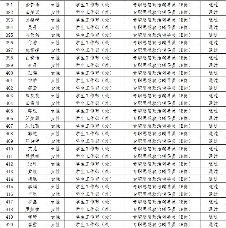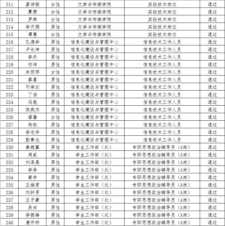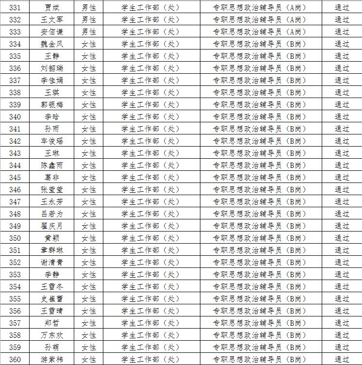 经资格审查,下列考生符合报考条件,准予参加笔试(笔试时间为4月15日上午8:30-10:30),现将资格审查合格名单进行公示。如有疑问请于2023年4月6日下午17:00点前向36365线路检测登录入口人事处反馈。