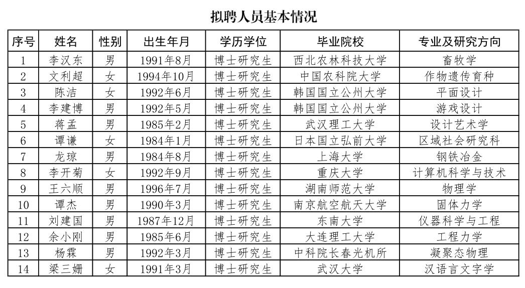 2023年专项公开招聘拟聘人员(博士)公示二