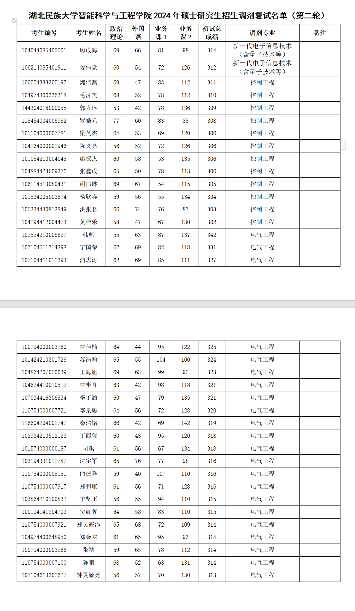 36365线路检测登录入口智能科学与工程学院2024年硕士研究生招生调剂复试名单(第二轮)
