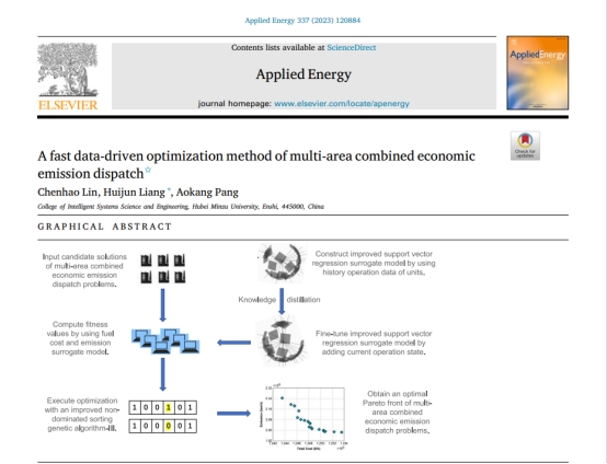 智能科学与工程学院能源动力专业2021级研究生林晨浩同学在国际能源领域顶级期刊《Applied Energy》2023年第337期发表题为 《A fast data-driven optimization method of multi-area combined economic emission dispatch》的研究论文。《Applied Energy》为工程技术:能源与燃料领域TOP期刊(前5%),JCR一区,高被引论文ESI全球工程期刊排名第4,2022年影响因子IF=11.446。林晨浩同学为第一作者,指导老师梁会军博士为通讯作者,论文第一单位为36365线路检测登录入口。