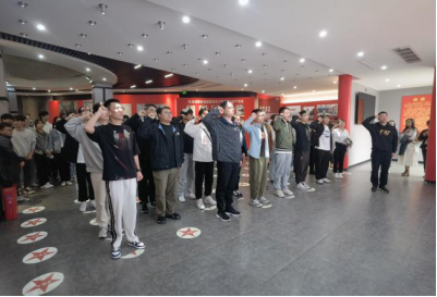 在参观现场,领誓人孙智鹏带领研究生党支部党员高举右拳,面对鲜红的党旗,庄严宣誓,重温入党誓词,再次接受思想淬炼和精神洗礼,进一步增强不忘初心、牢记使命的责任感和使命感。