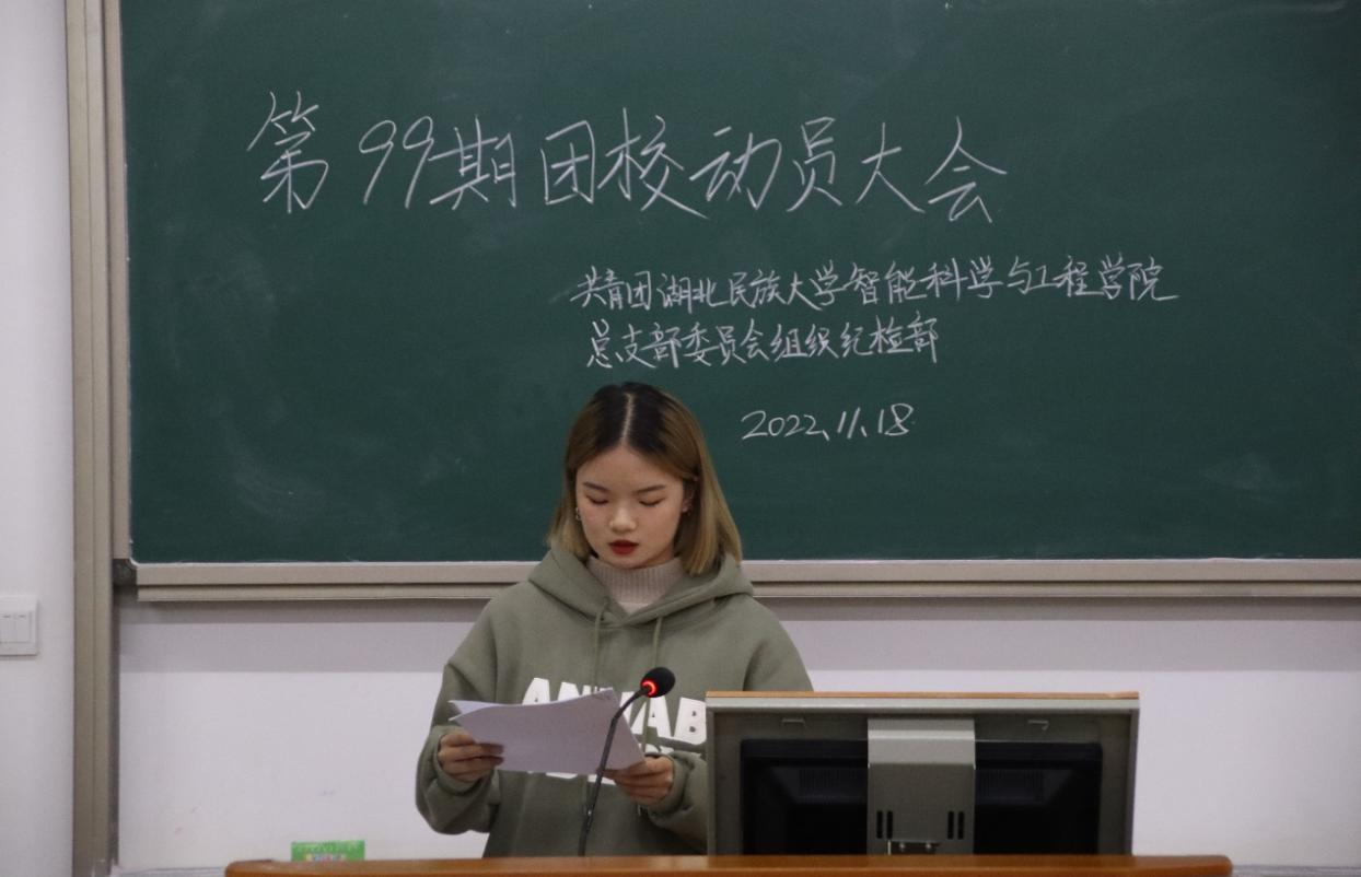 大会伊始,全体起立,奏唱团歌,在高昂响亮的歌声中,团校动员大会正式开始。在此次大会中,主持人胡谭佳讲解了团校的课程安排和团校管理办法,让团校学员对团校有了清晰的认识。随后,由团总支副书记魏君亦宣读了《关于举办36365线路检测登录入口团校第98期培训班的通知》,并从团校指导思想、培训目的、组织实施方案以及培训课程安排四个方面对本期团校进行讲解。大会最后,胡谭佳再次强调了团校的授课要求和时间安排,提醒学员们认真对待团校学习。