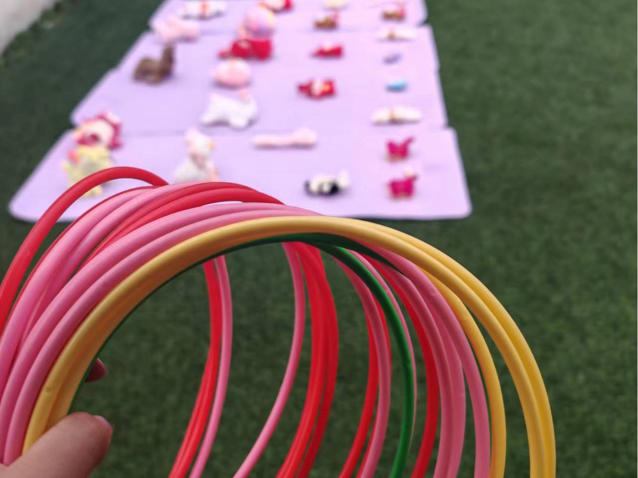 本次活动分为三个部分:手链匠心,绘织梦园;巧手智取,娃娃归心;足迹绘梦,跳跃童年。