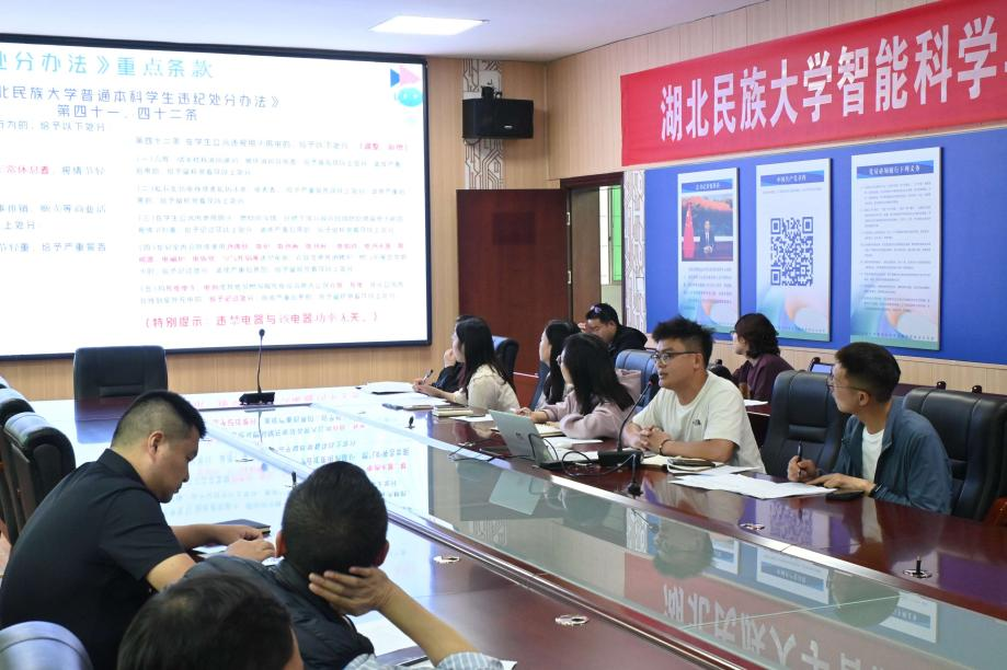 2024年5月5日,学院通过班主任例会,组织全体班主任开展了《36365线路检测登录入口学生违纪处分办法》专题学习,会议由学工办主任刘薪主持,辅导员郑扬帆主讲,学院党委副书记汪涛、学工办全体辅导员、全体班主任参加了本次学习。