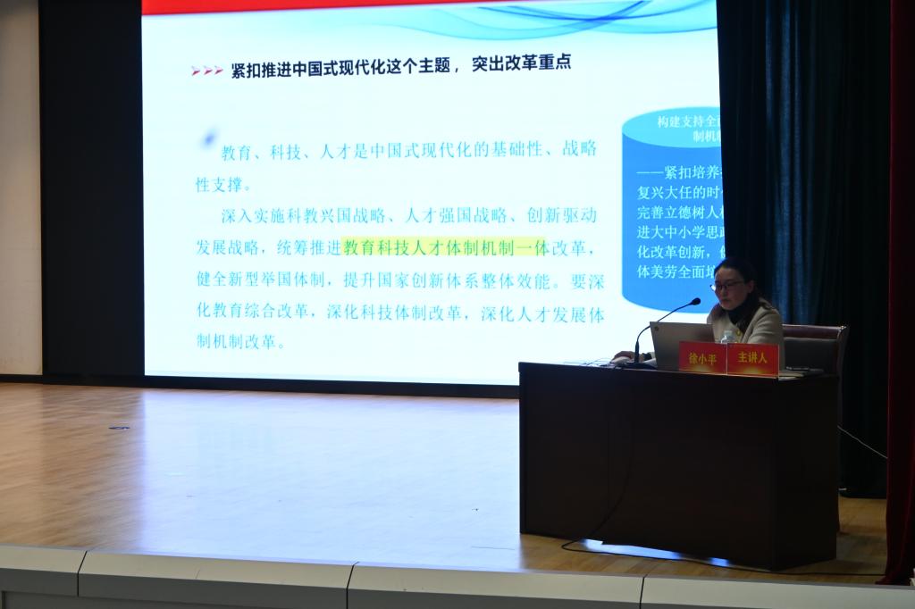 在宣讲中,徐小平就二十届三中全会提出的深化改革的主要方面一一进行了讲解,并就改革的具体举措和对工科学生的影响表达了自己的观点,她认为在全面深化改革的背景下,工科学生大有可为,强调工科学生需要关注时代发展动向、顺应时代潮流,成为国家现代化建设的核心力量。