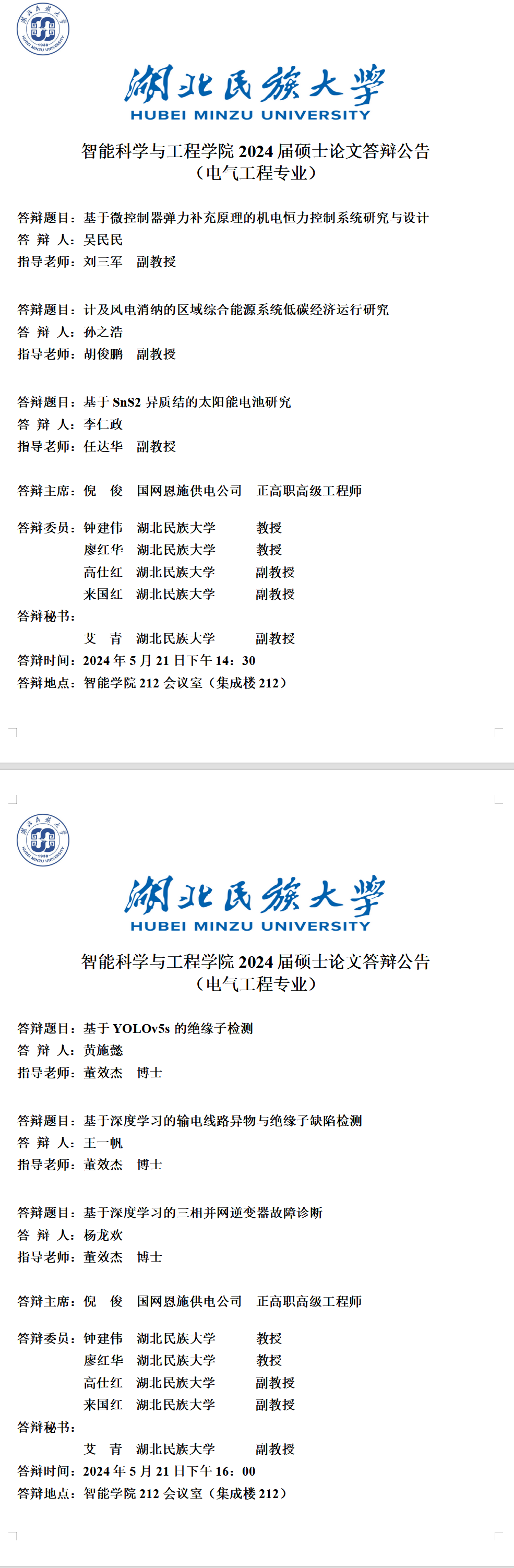 : 智能科学与工程学院2024届硕士学位论文答辩公告(六)