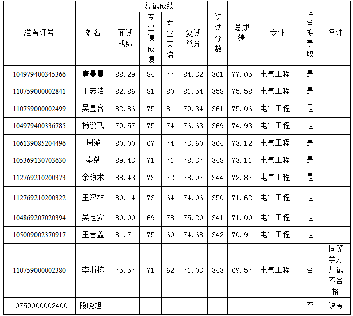 信息工程学院2019年研究生入学总成绩及拟录取公示(第二轮)