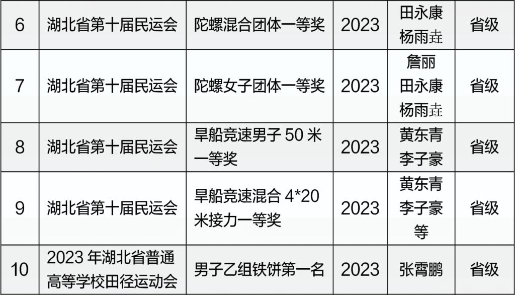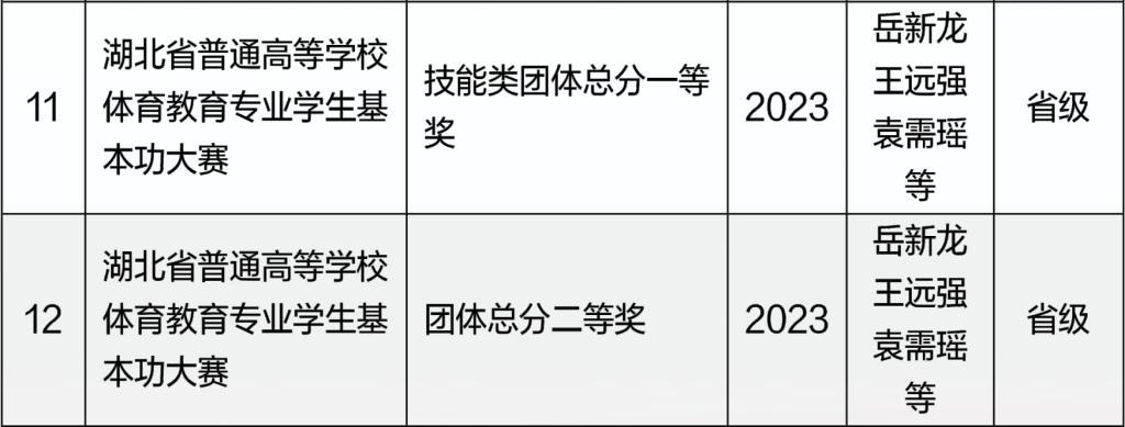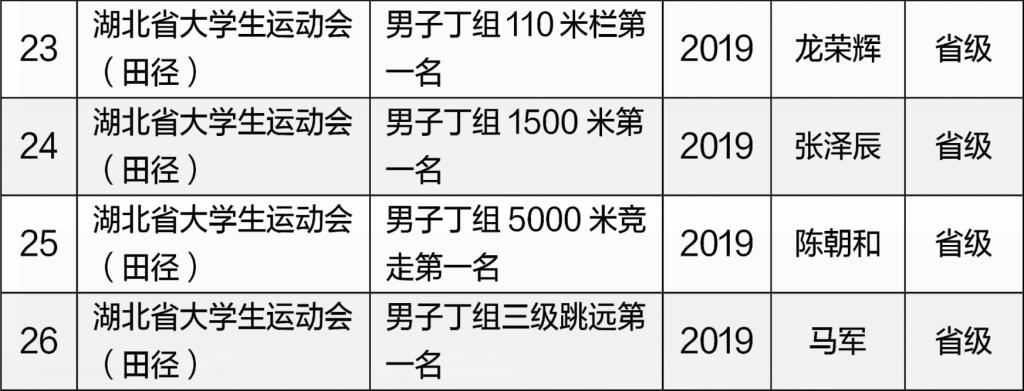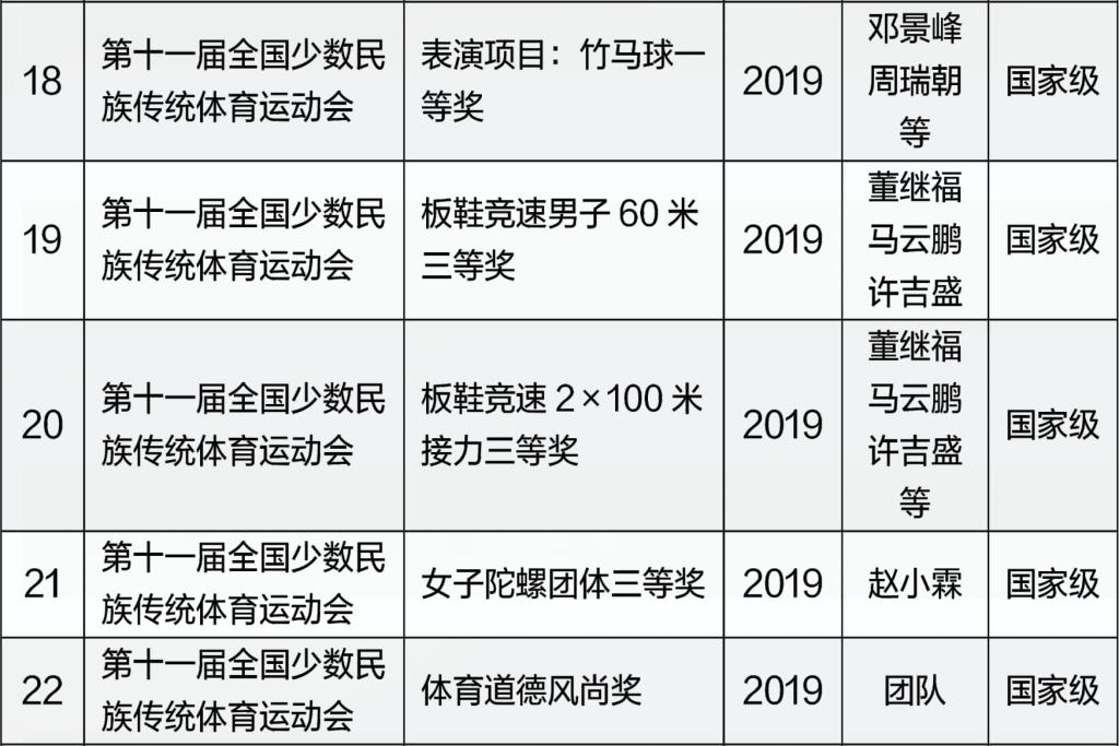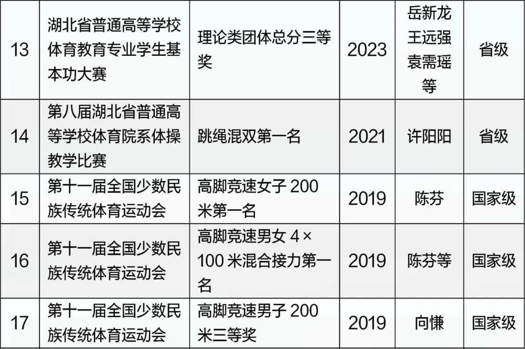 体育学院近五年运动竞赛成绩